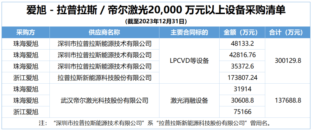据北京邦枫讼师事情所出具爱旭定补充充偏睹书披露,截至2023年12月31日,爱旭20,000万元以上的庞大配置采购合同、订单数据显示,帝尔激光进账13.77亿元,拉普拉斯进账30.01亿元。